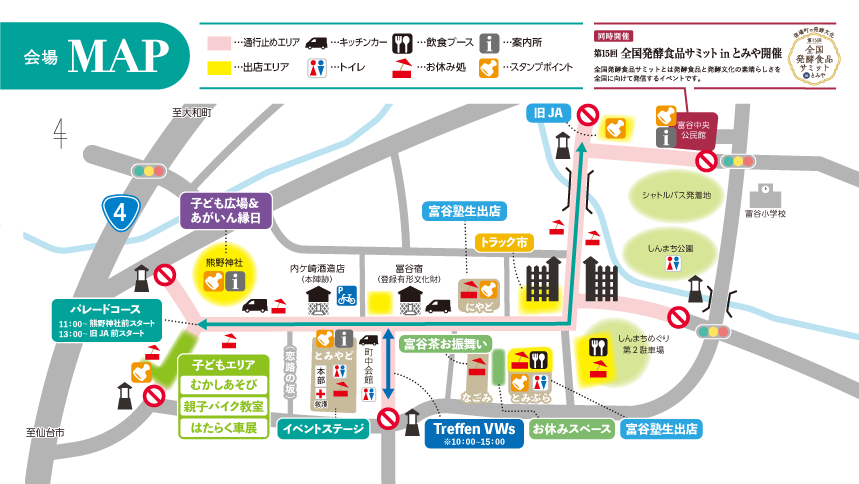 会場周辺は当日7:30〜18:00まで一部区間、一般車両の通行ができませんのでご注意ください。
